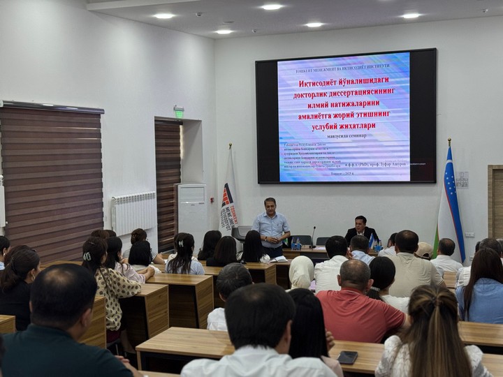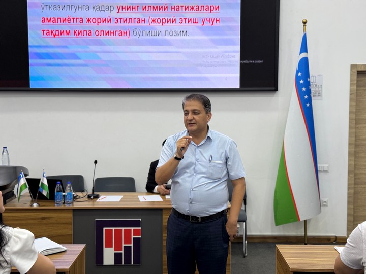 12 сентября 2025 года заместитель директора Центра исследований З.Ашуров провел семинар для преподавателей и соискателей Ташкентского института менеджмента и экономики на тему «Методические аспекты внедрения в практику результатов докторской диссертации экономического направления». В ходе семинара он рассказал слушателям об методических указаниях по оценке внедрения в практику научных результатов диссертации (ре. Минюст. №2666 от 14.04.2015 г.), утвержденных ВАК, формах представления научных результатов для внедрения, формах оформления документов о внедрении, а также частых ошибках и недостатках, допускаемых исследователями при внедрении научных результатов.