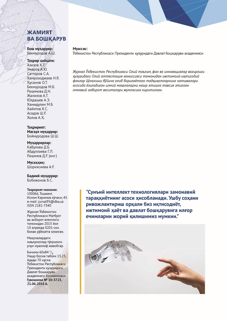 ![]() г.Ташкент, улица Амира Темура, 6 (+998 71) 259-21-06 research@davaktiv.uz |
