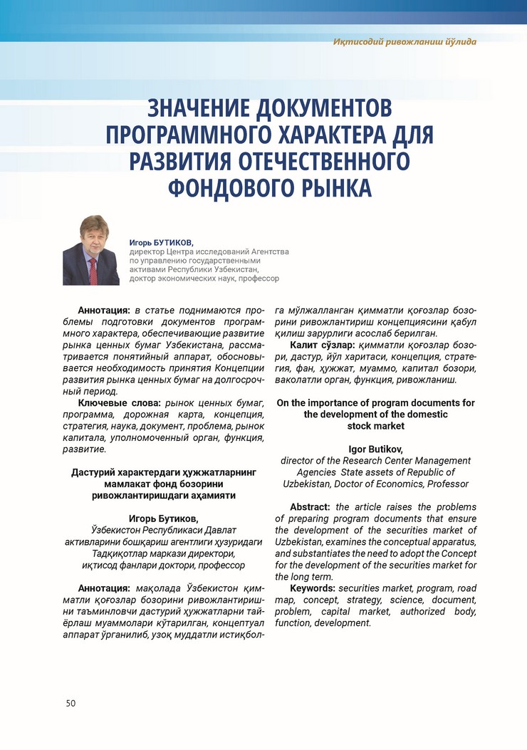 ![]() Бутиков И.Л. Значение документов программного характера для развития отечественного фондового рынка |