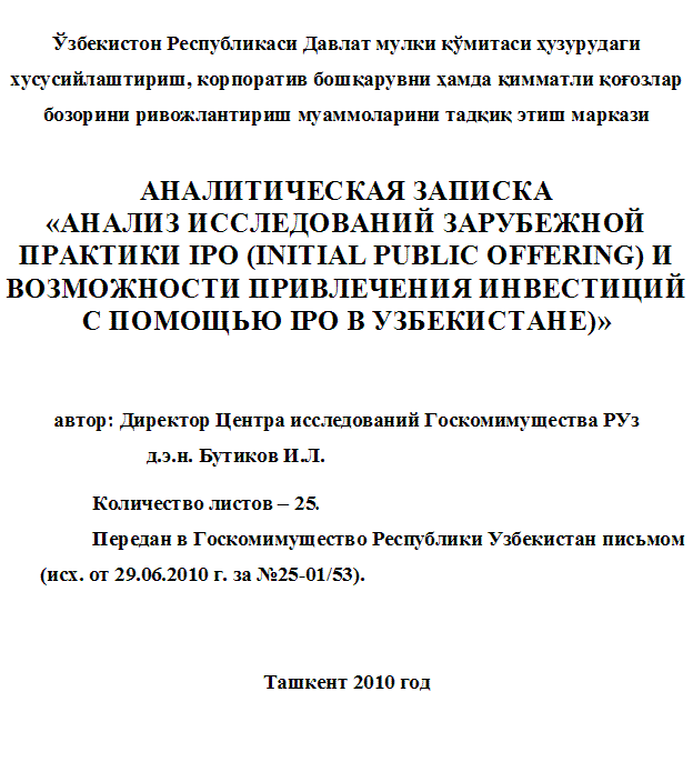 Центр исследования проблем приватизации и управления государственными активами при Агентстве по управлению государственными активами Республики Узбекистан |