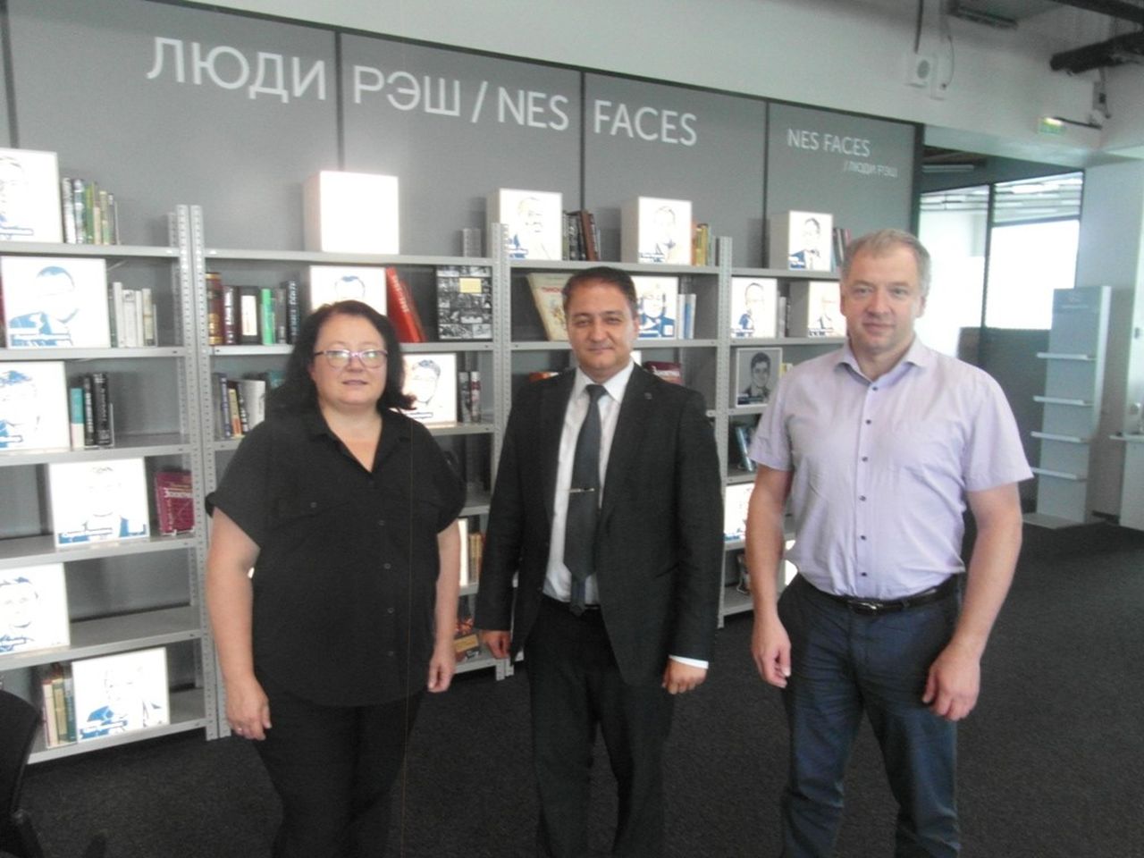Ректором Российской экономической школы А.Д.Суворовым и Директором Центра экономических и финансовых исследований и разработок РЭШ Н.А.Волчковой, с которыми обсуждались вопросы двустороннего сотрудничества между организациями в будущем;