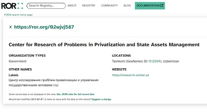 Центр исследования проблем приватизации и управления государственными активами официально зарегистрирован в международной базе данных Research Organization Registry (ROR) под идентификатором https://ror.org/02wjvj587.