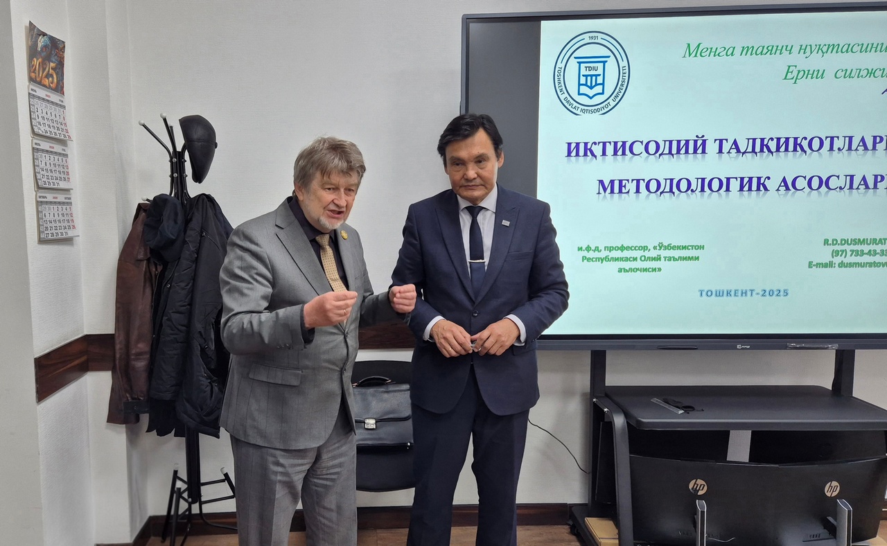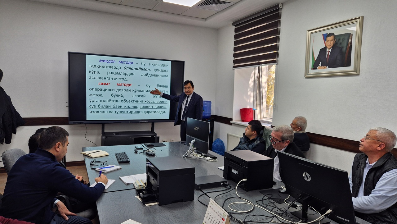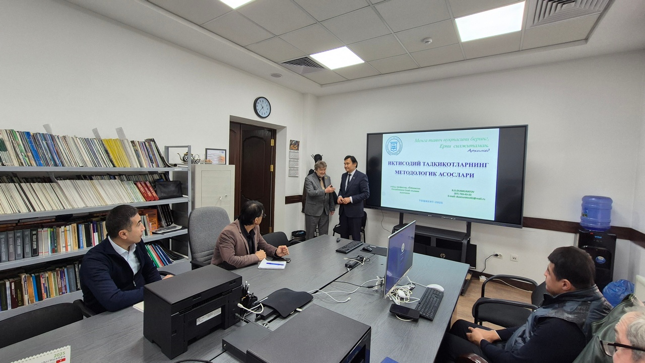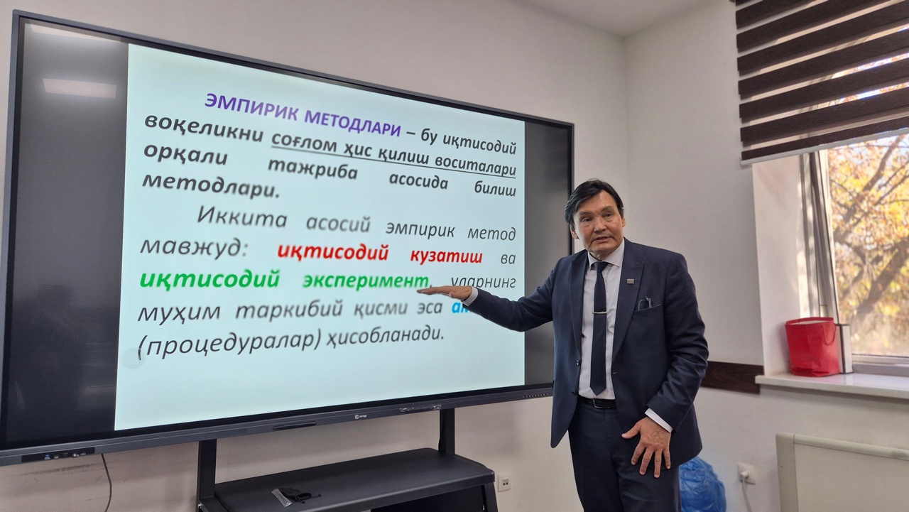 12 ноября 2025 года в Центре исследований при Агентстве по управлению государственными активами Республики Узбекистан состоялся тренинг на тему «Методологические основы экономических исследований», который провёл доктор экономических наук, профессор, Заслуженный работник высшего образования Республики Узбекистан Раджапбай Давлатбаевич Дусмуратов.