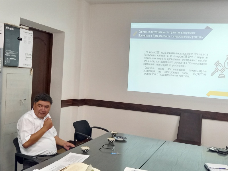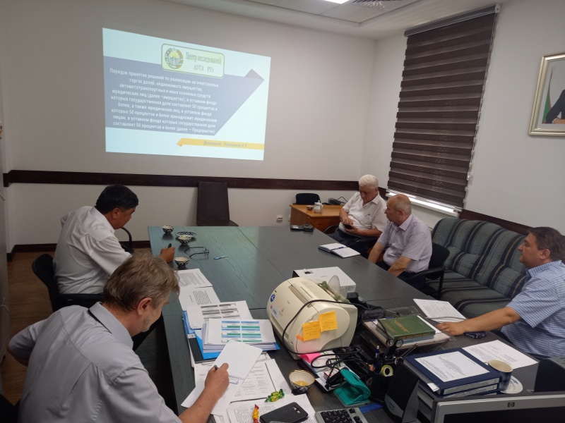 27 июля 2022 года Центром был организован и проведен очередной научный семинар, в котором выступили с докладом заведующий отделом Р.Каюмов на тему «Пути совершенствования методов анализа финансово-экономического состояния предприятия» и заведующий отделом А.Валижонов на тему «Порядок принятия решений по реализации на электронных торгах недвижимости, принадлежащей предприятиям с государственным участием».