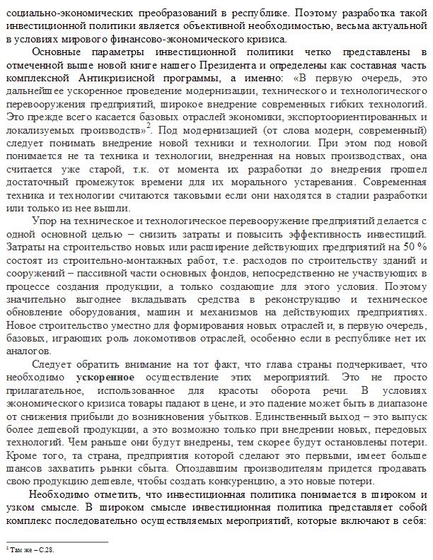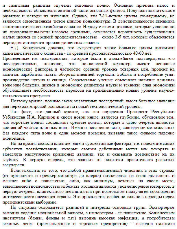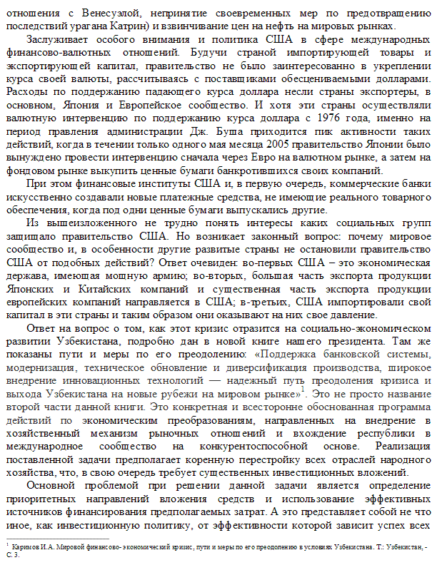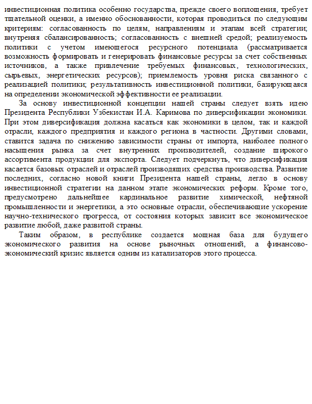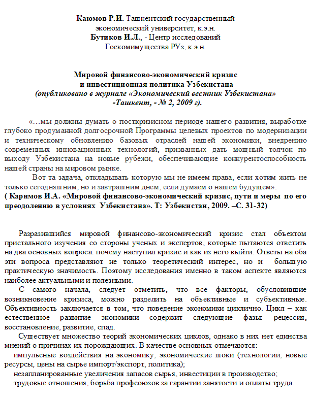 Мировой финансово-экономический кризис и инвестиционная политика Узбекистана |
