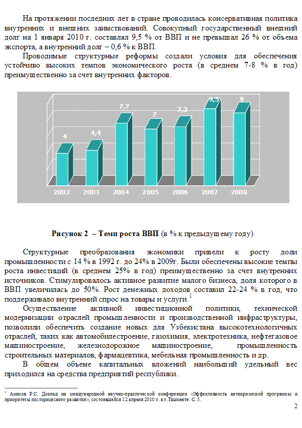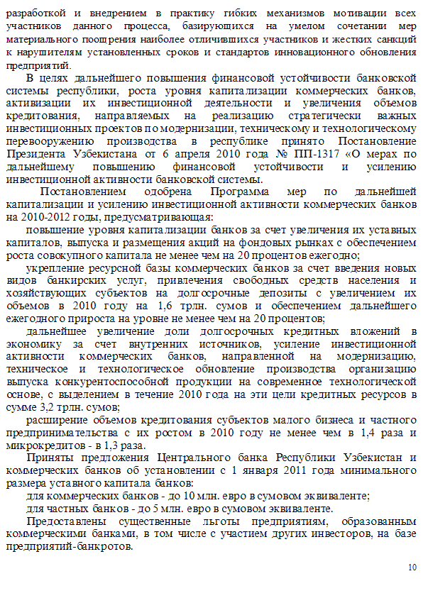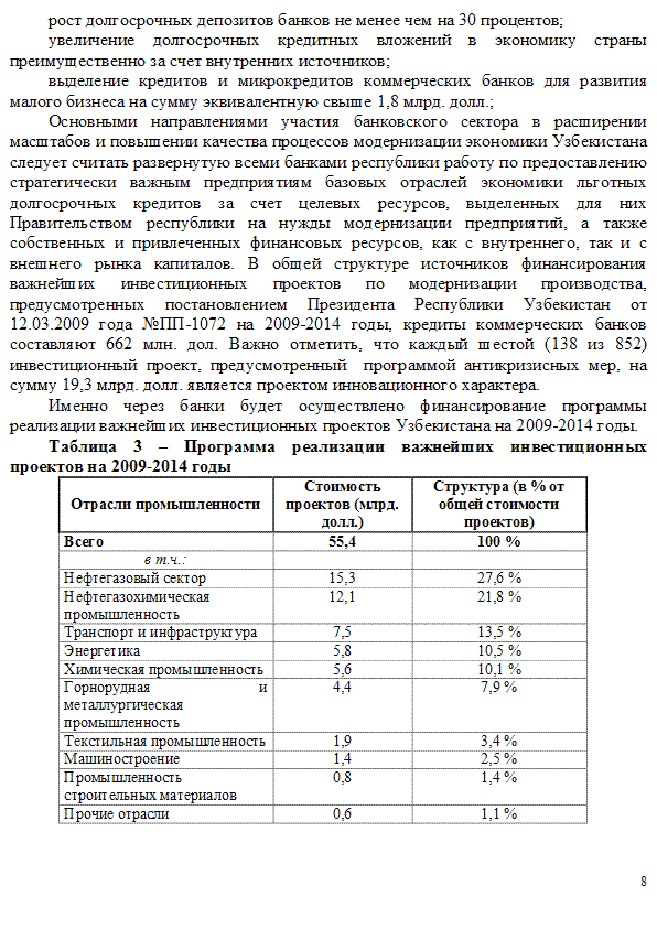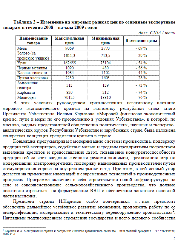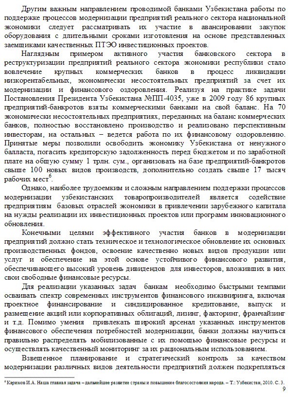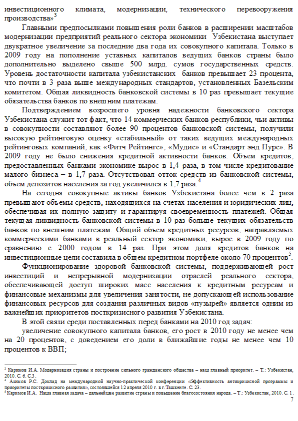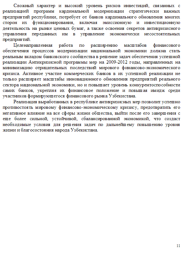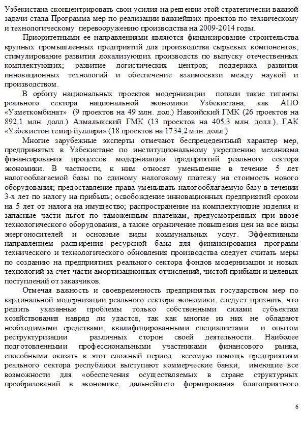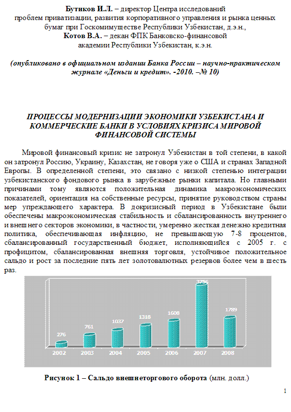 Процессы модернизации экономики Узбекистана и коммерческие банки в условиях кризиса мировой финансовой системы |