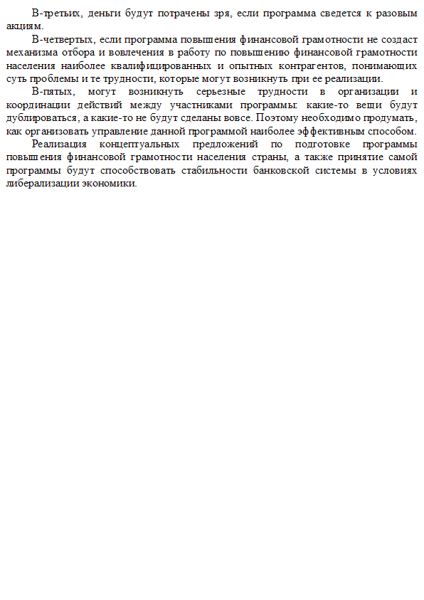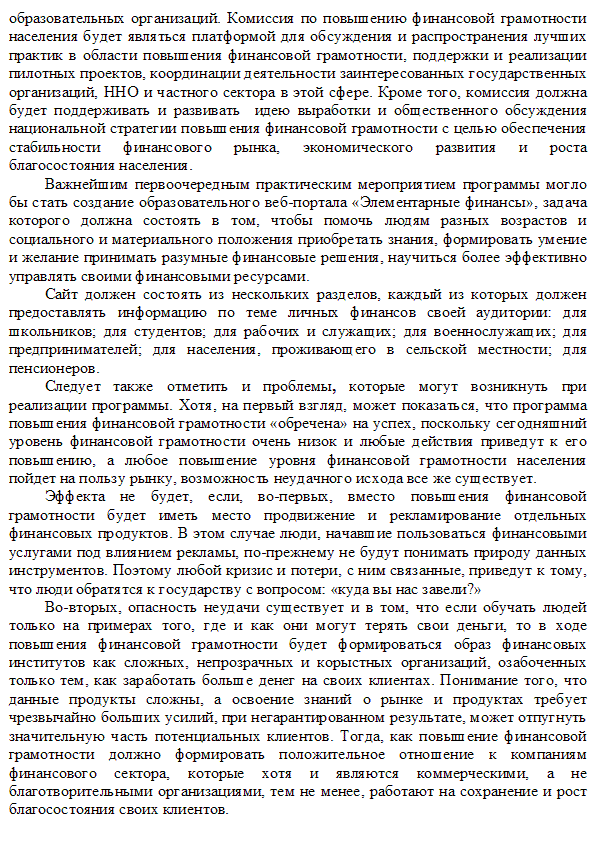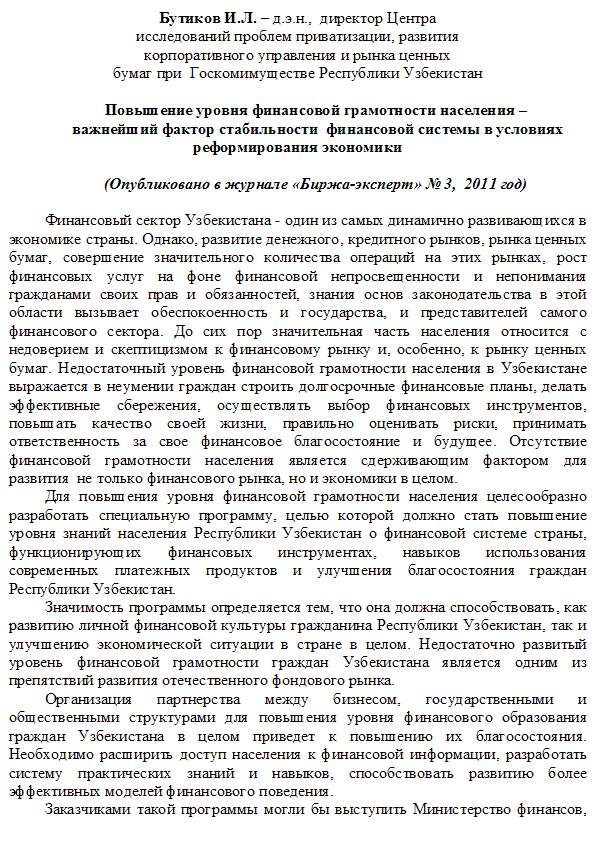 Повышение уровня финансовой грамотности населения – важнейший фактор стабильности финансовой системы в условиях реформирования экономики |
