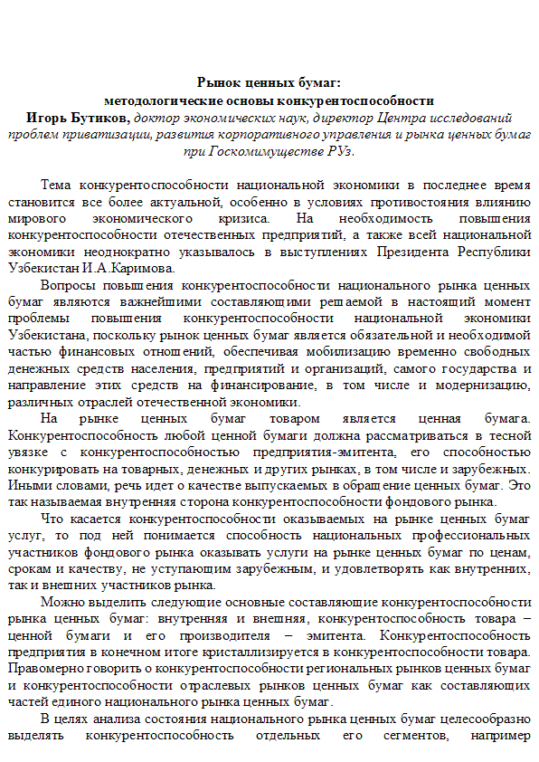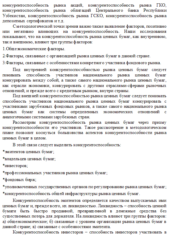 Рынок ценных бумаг: методологические основы конкурентоспособности |