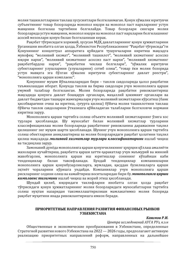 Каюмов Р.И. «Приоритетные направления развития финансовых рынков Узбекистана» |