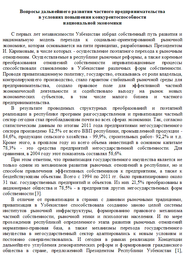 Н.Неделькина: «Вопросы дальнейшего развития частного предпринимательства в условиях повышения конкурентоспособности национальной экономики |