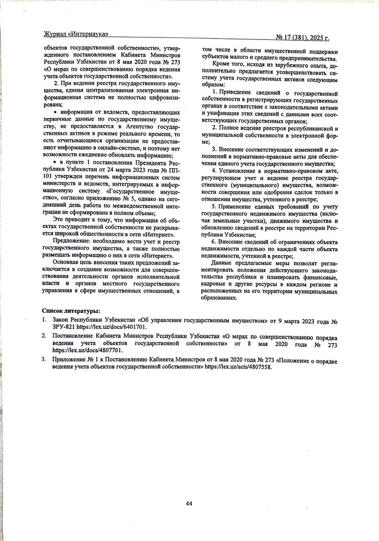 Нуралиев Р.Т., Усманов Б.Ш. «Совершенствование системы учёта государственных активов: проблемы и пути решения» |