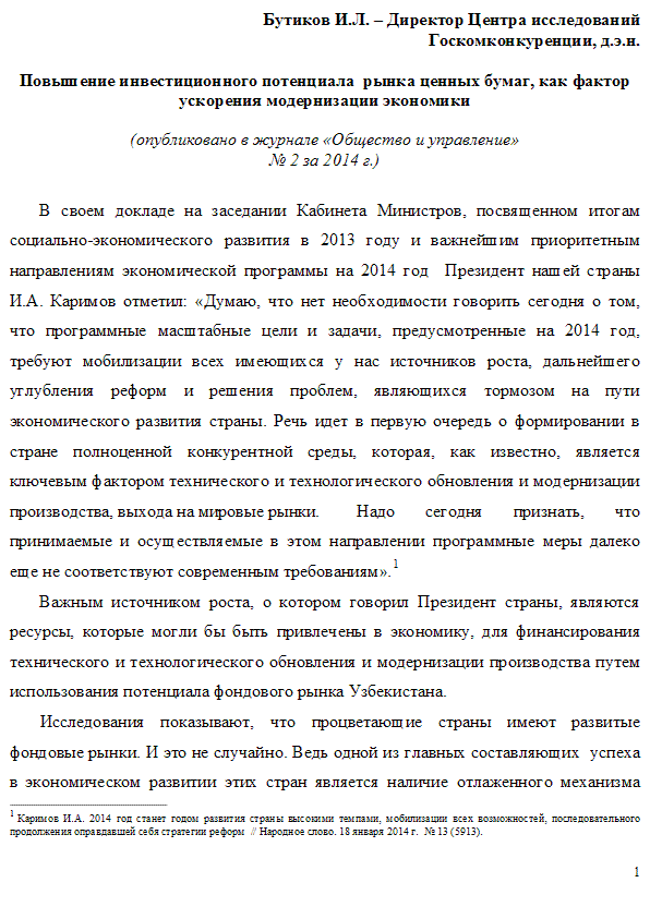 Повышение инвестиционного потенциала рынка ценных бумаг как фактор ускорения модернизации экономики |