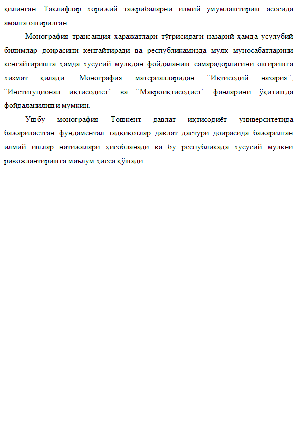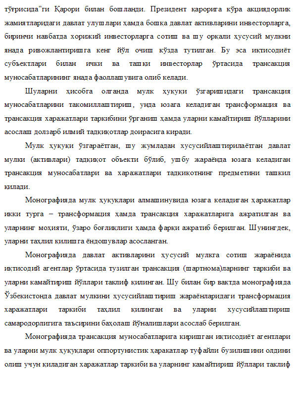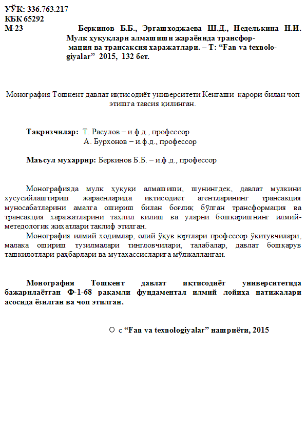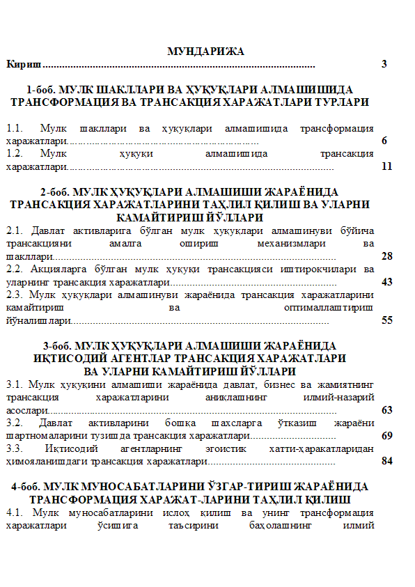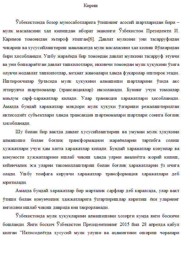 Мулк ҳуқуқлари алмашиши жараёнида трансформация ва трансаксия харажатлари |