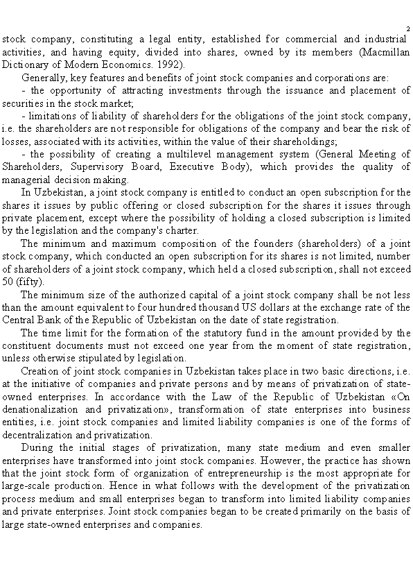 The development of corporate governance in joint stock companies of Uzbekistan |