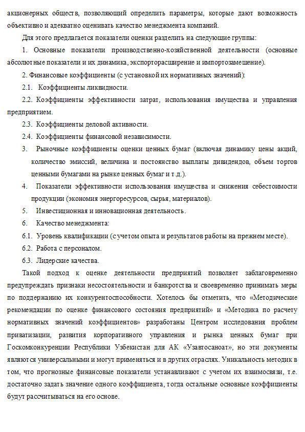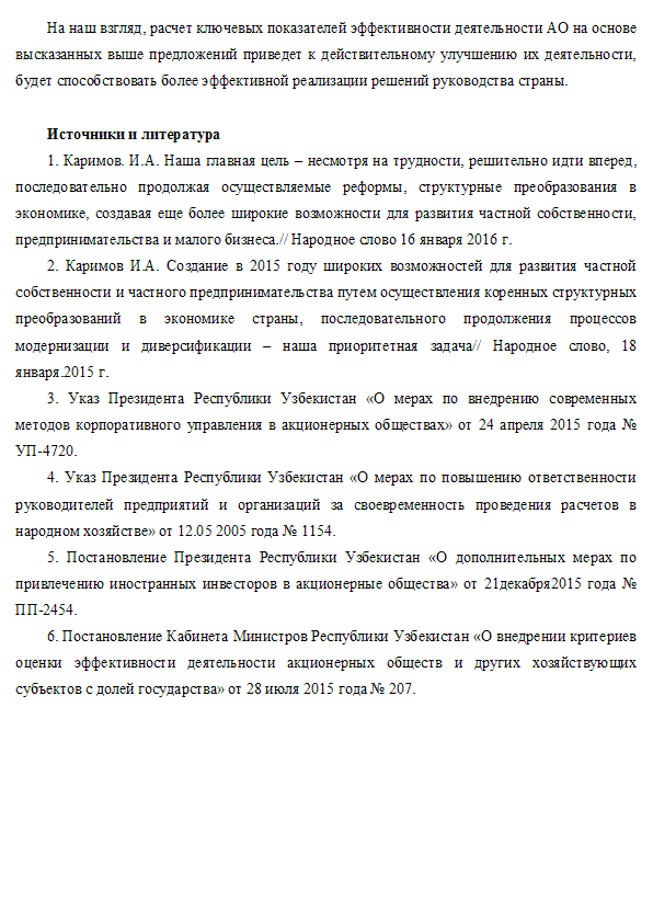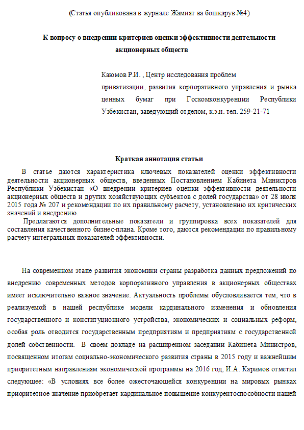 К вопросу о внедрении критериев оценки эффективности деятельности акционерных обществ |