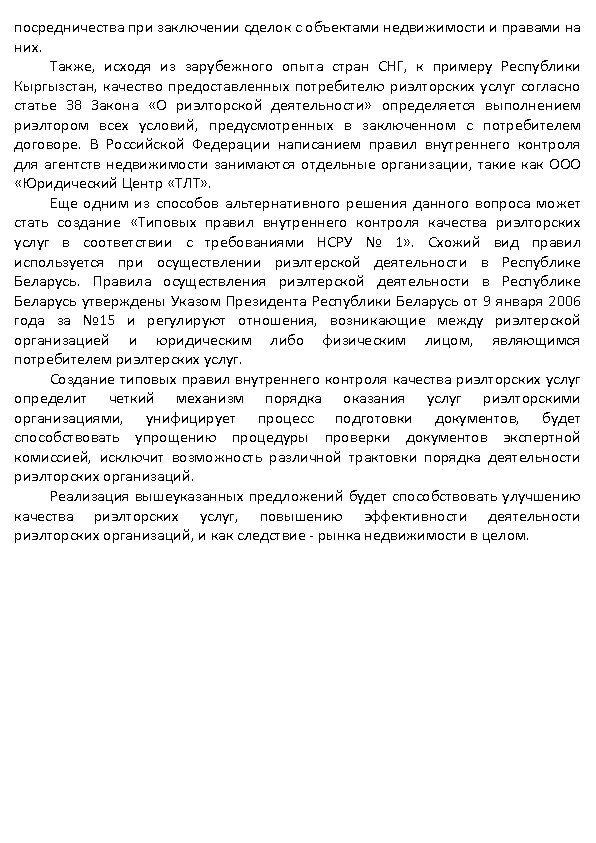 Необходимость создания внутренних правил контроля качества риэлторских услуг |