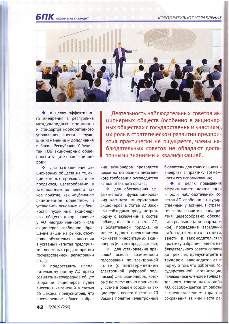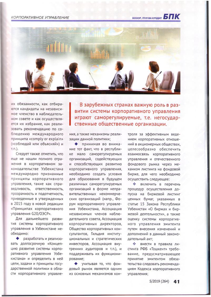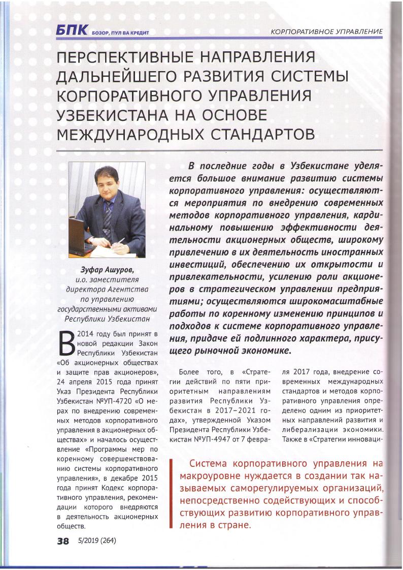 Перспективные направления дальнейшего развития системы корпоративного управления Узбекистана на основе международных стандартов |