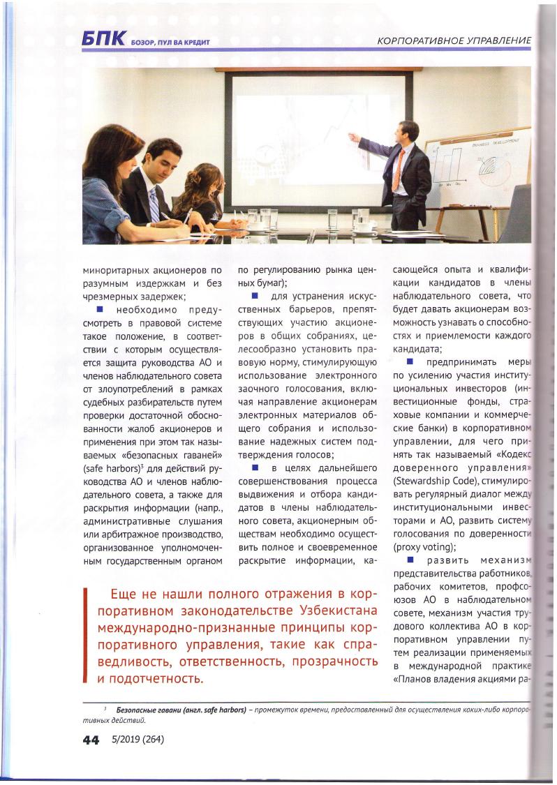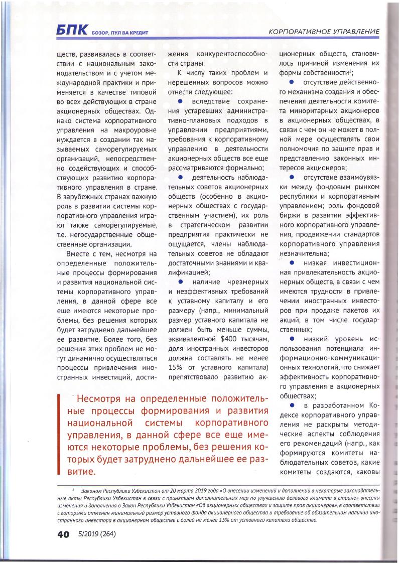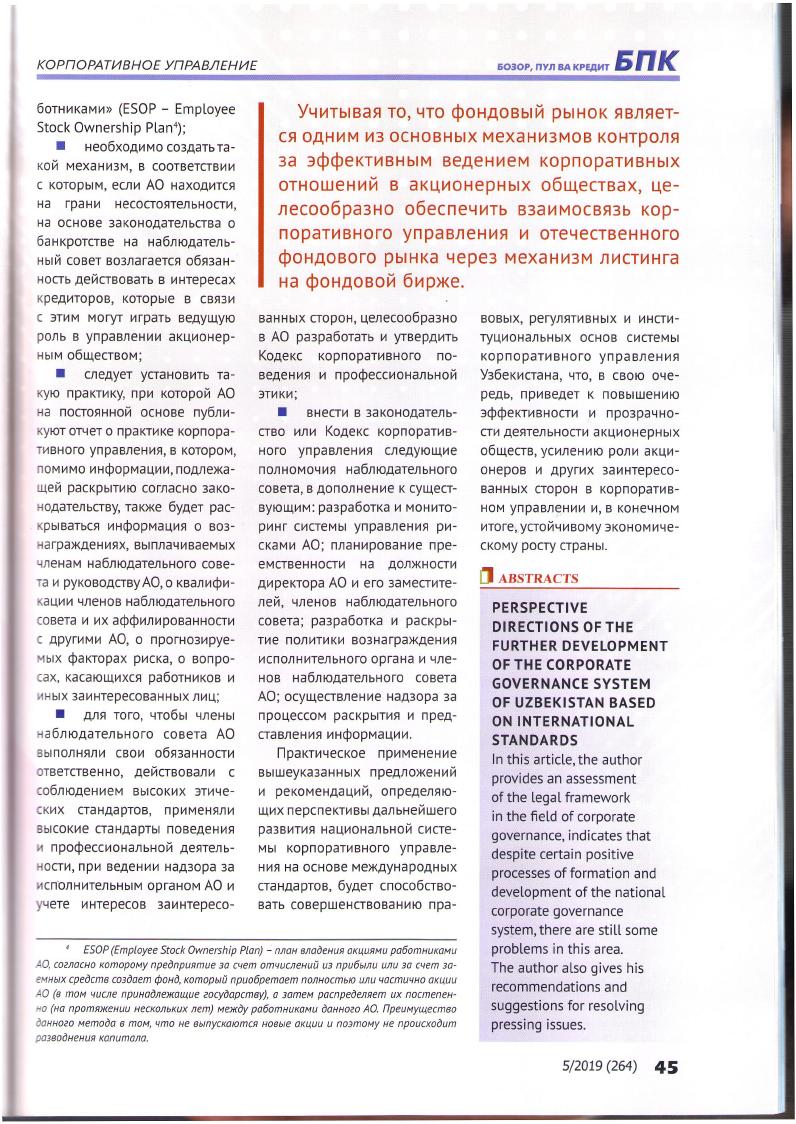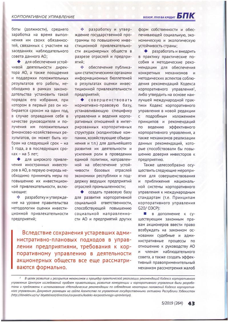 Перспективные направления дальнейшего развития системы корпоративного управления Узбекистана на основе международных стандартов |