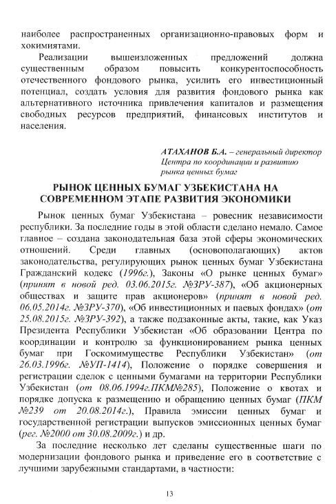 И. Бутиков: «О необходимости повышения конкурентоспособности рынка ценных бумаг Узбекистана» |