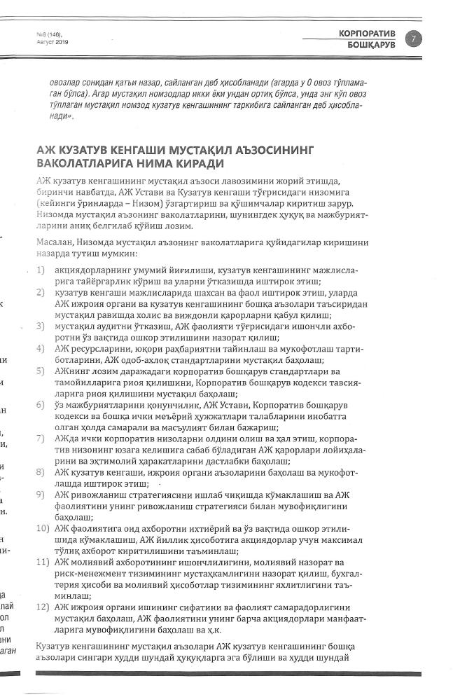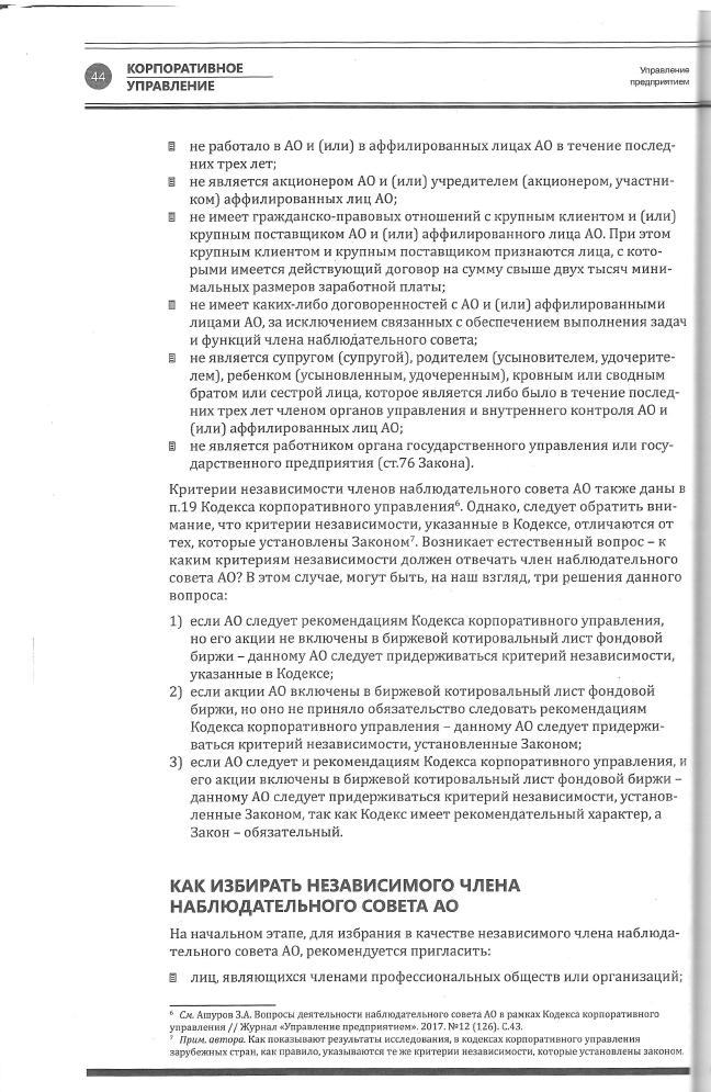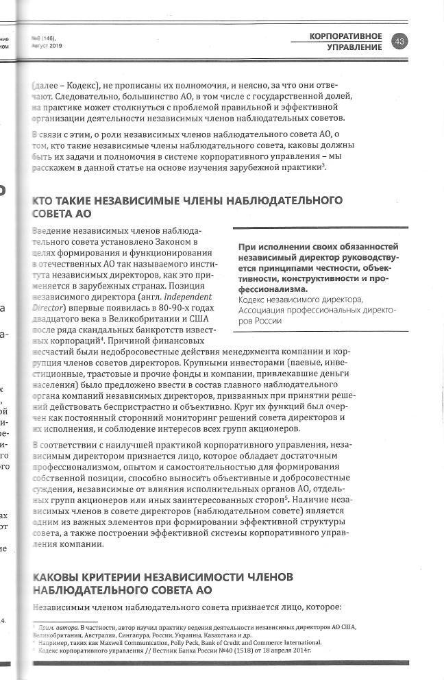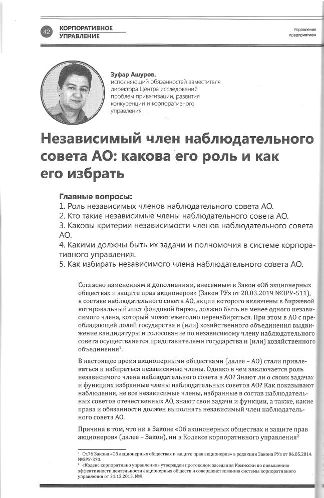 З. Ашуров: «Независимый член наблюдательного совета АО: какова его роль и как его избрать» |