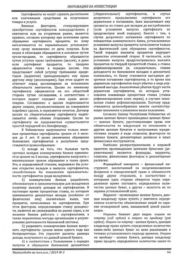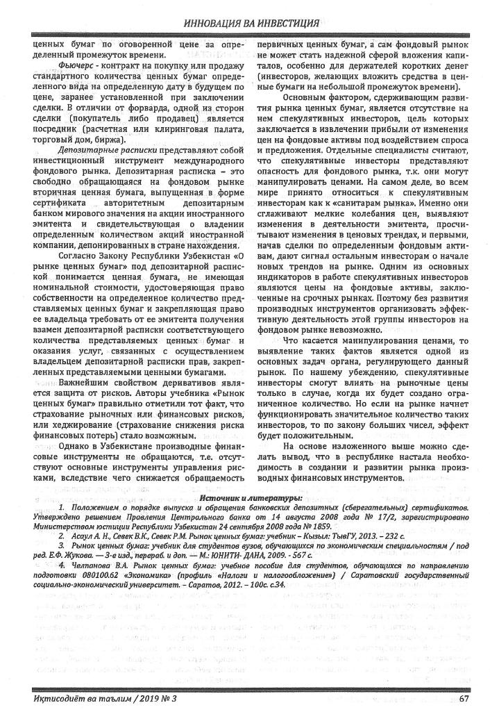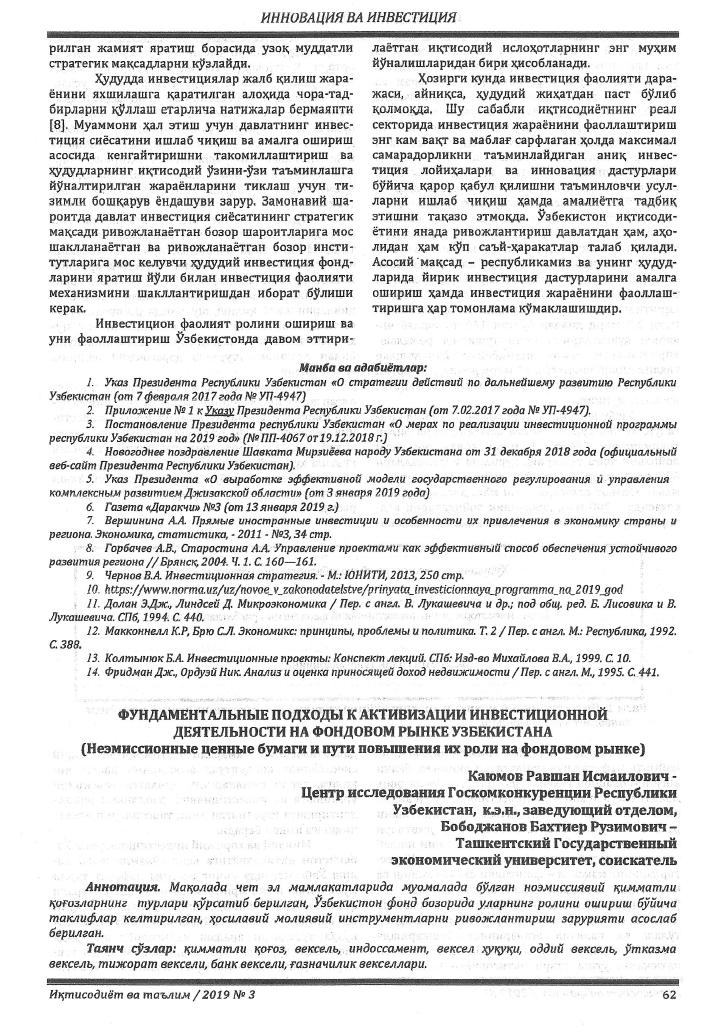 Каюмов Р.И: «Фундаментальные подходы к активизации инвестиционной деятельности на фондовом рынке Узбекистана (Неэмиссионные ценные бумаги и пути повышения их роли на фондовом рынке)» |