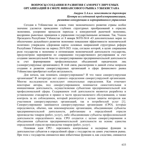 З. Ашуров: «Вопросы создания и развития саморегулируемых организаций в сфере финансового рынка Узбекистана» |