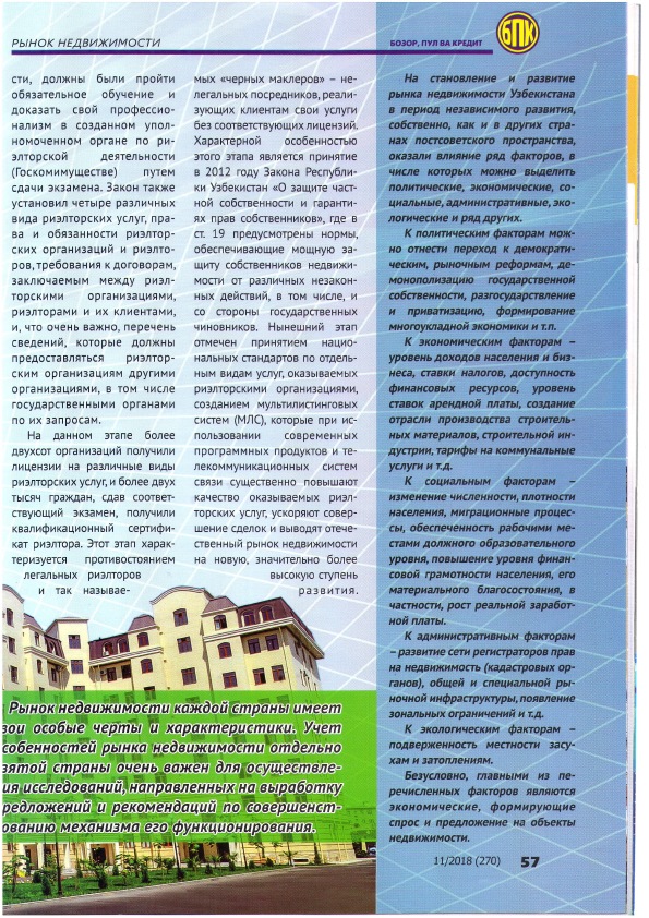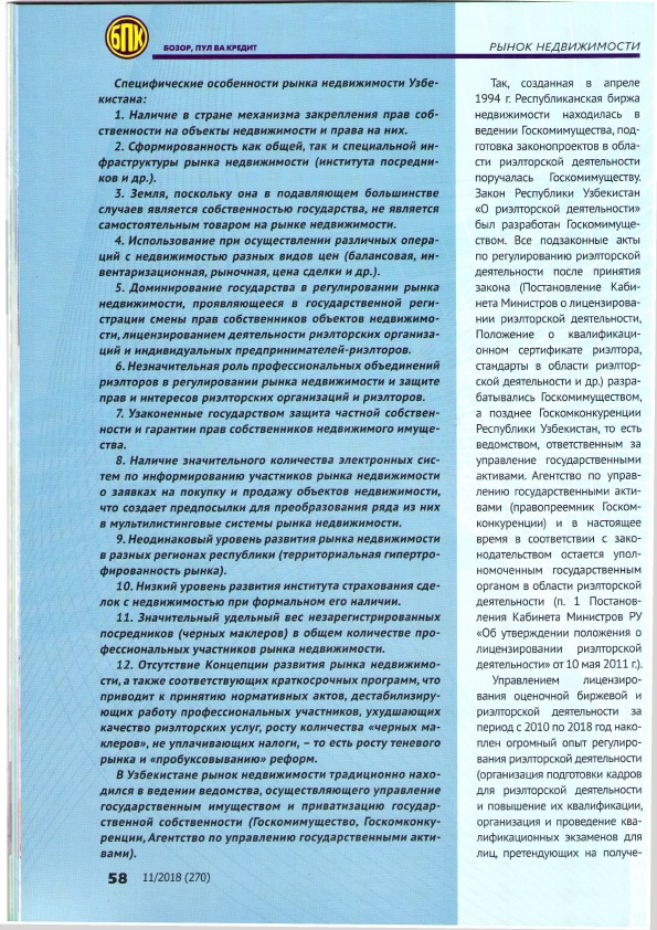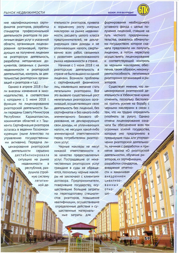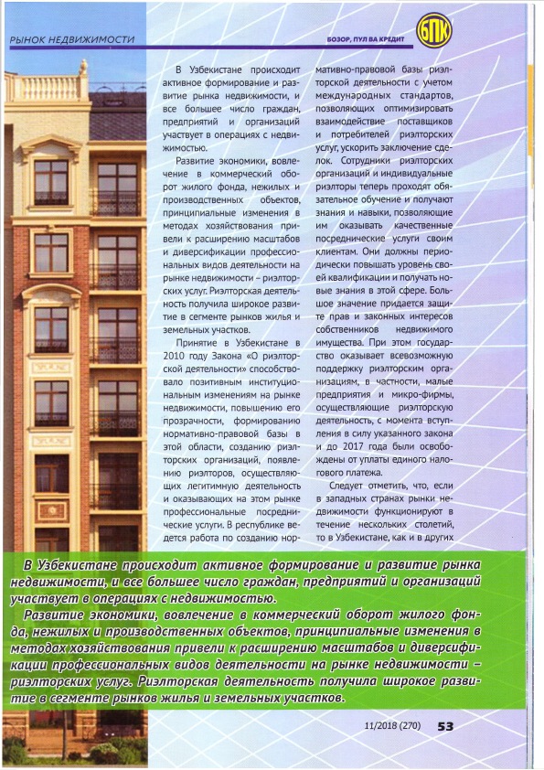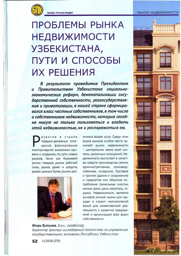 И. Бутиков: «Проблемы рынка недвижимости Узбекистана, пути и способы их решения» |