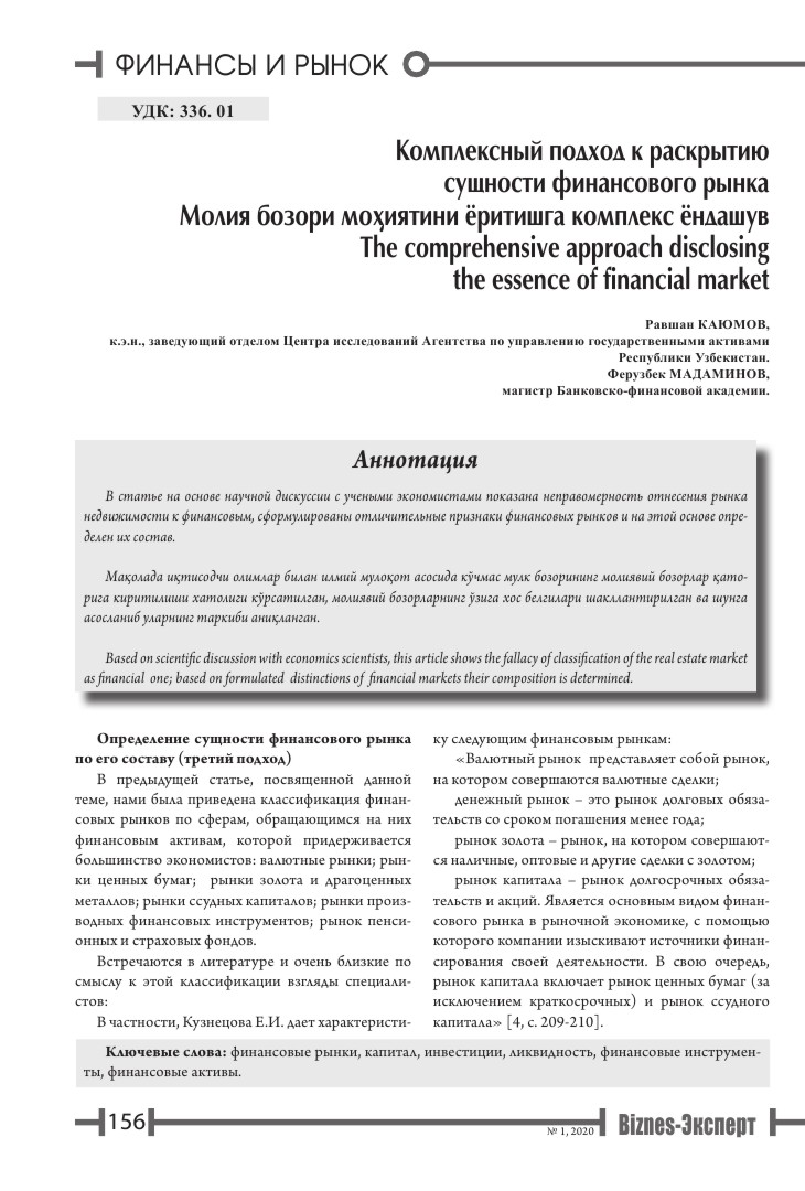• Р. Каюмов: «Комплексный подход к раскрытию сущности финансового рынка»