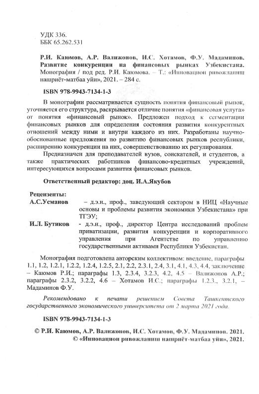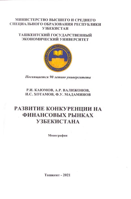 Монография: Развитие конкуренции на финансовых рынках Узбекистана |