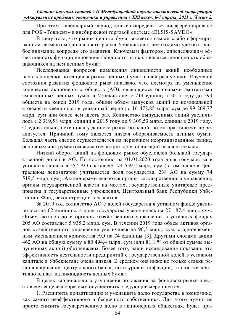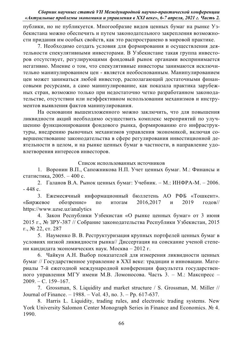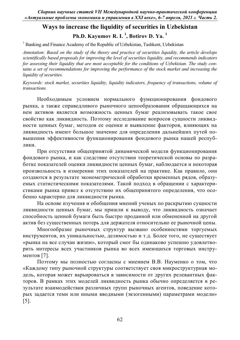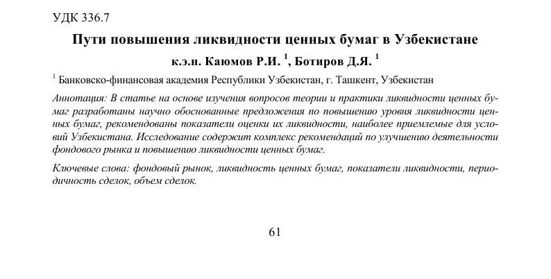 Каюмов Р.И., Ботиров Д.Я. «Пути повышения ликвидности ценных бумаг в Узбекистане» |