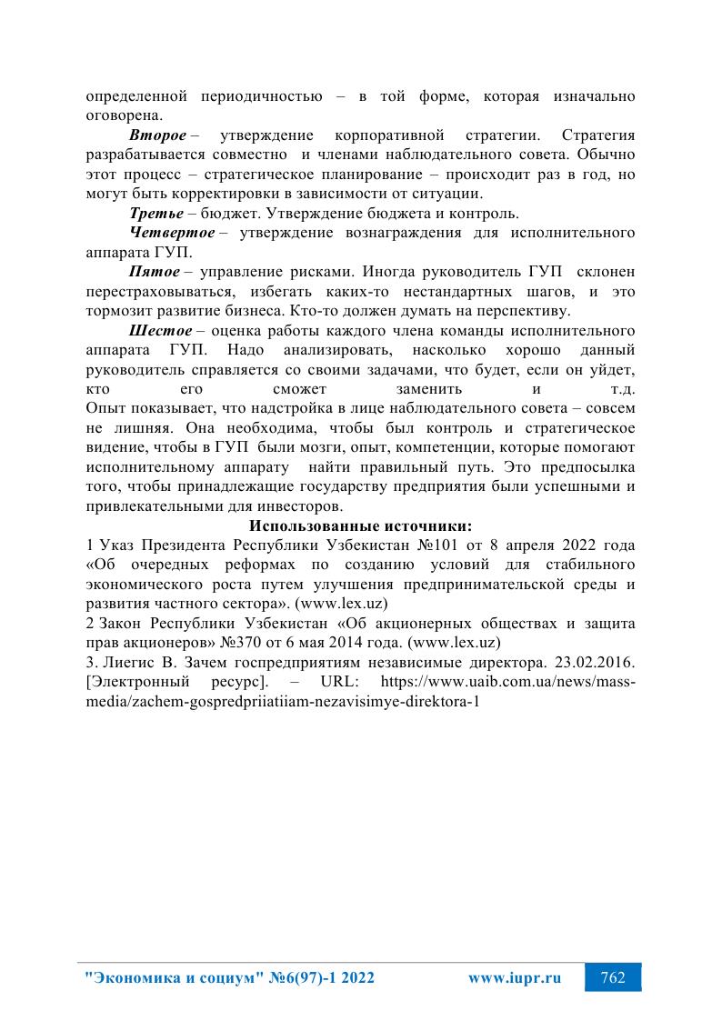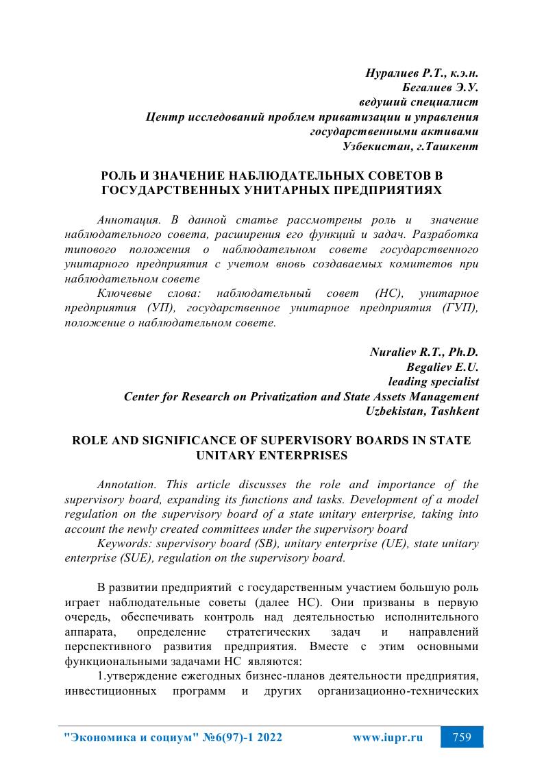 Нуралиев Р.Т., Бегалиев Э.У. «Роль и значение наблюдательных советов в государственных унитарных предприятиях» |